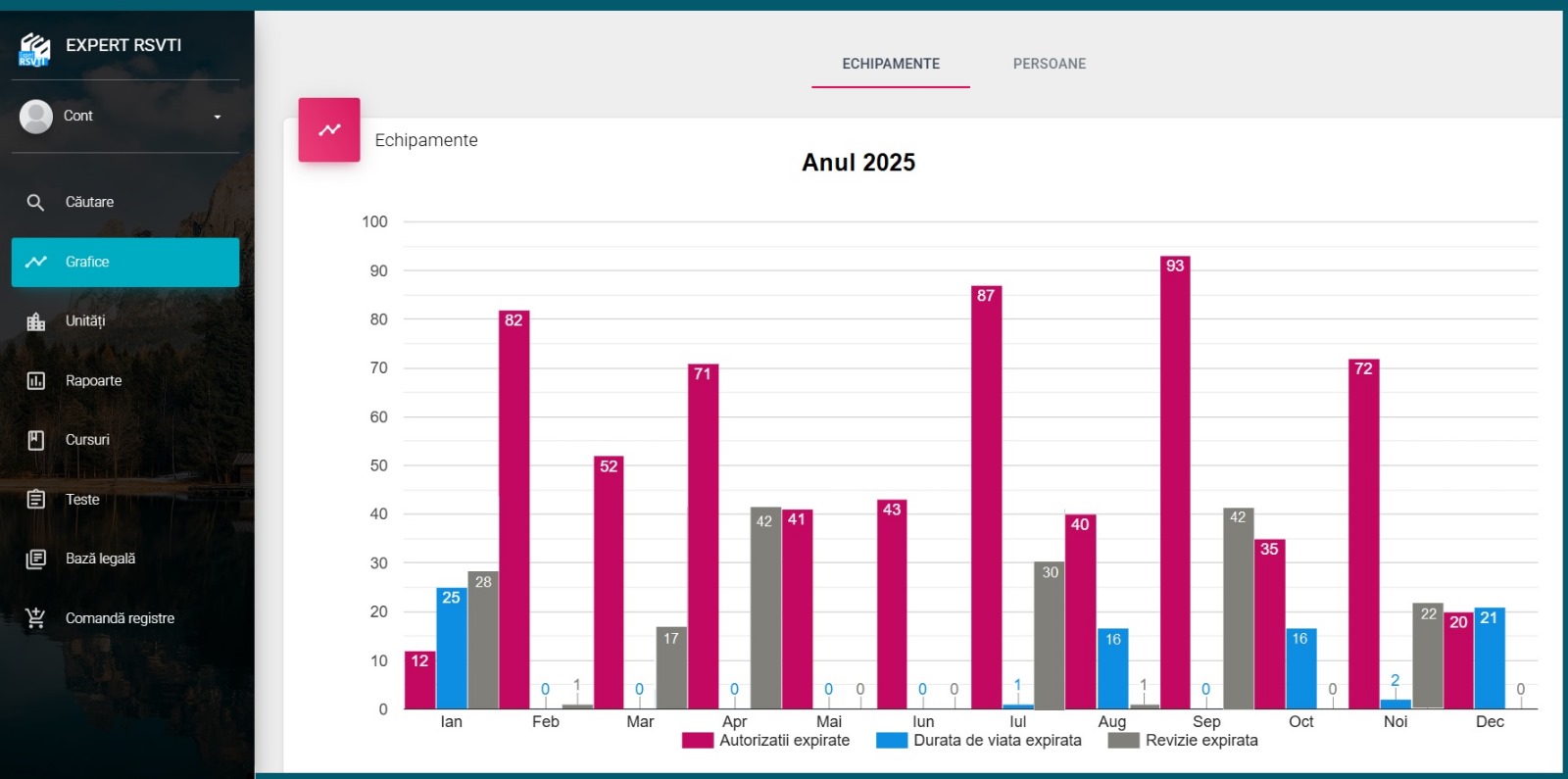 • Scadențele sunt actualizate automat: Ori de câte ori reautoritizezi un echipament sau o persoană, datele se reflectă instantaneu în graficele de scadență.